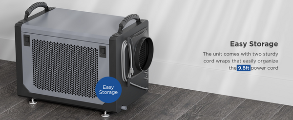 - Compact Design For Crawl Space: At just 19.3″D x 12.4″W x 14.15″H, comes with 4 levelling feet for sturdy installation. It can be hung with joist hanging kit or placed on a level surface for use. The feet on the bottom are made of rubber on them which will help prevent damage to hardwood flooring. Portable ridged handle easy to transport.