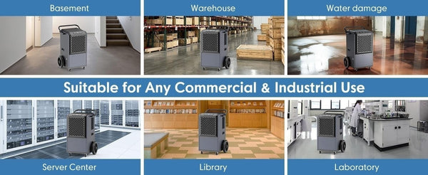 - Multifunction Dehumidify & Simple Operation: The dehumidifiers can work continuously for 24 hours.The newly upgraded control of this commercial dehumidifier has automatic humidistat, automatic restart after power failure, automatic defrosting, automatic on/off timer for 1-24 hours and continuous drainage, which can easily control humidity.