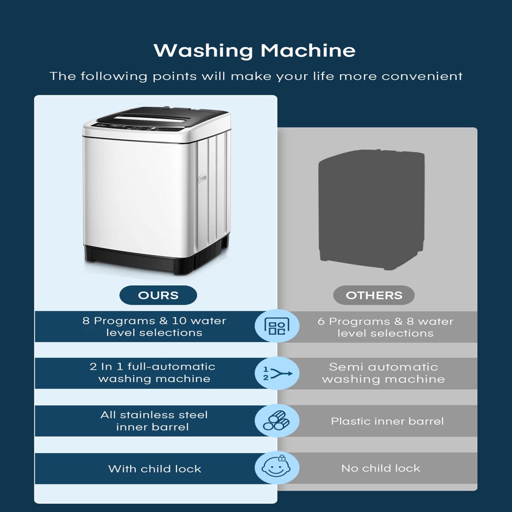 - 【Relieve you from hand washing】Are you still troubled by stink clothes, but left no time or energy to wash it. It’s the moment to buy a time and space saving washing machine for yourself and families. Simplest yet most effective - Put the clothes in -Choose the program and water level- Hit start button - Go and sip your coffee - Take it out. Simply enjoy clean laundry and fragrance of laundry detergent!