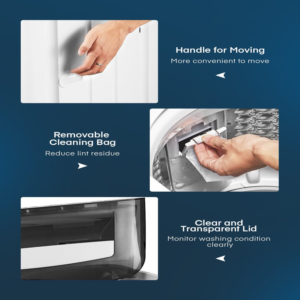 3. Have a filter net on the side of the washing barrel, which can easily storage the dirty when washing, and you could easily pull it off when cleaning the tub.