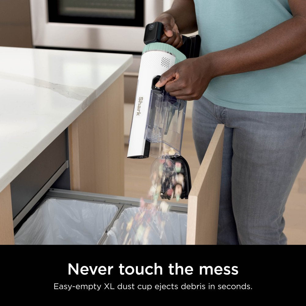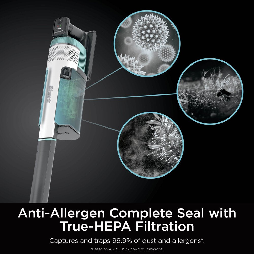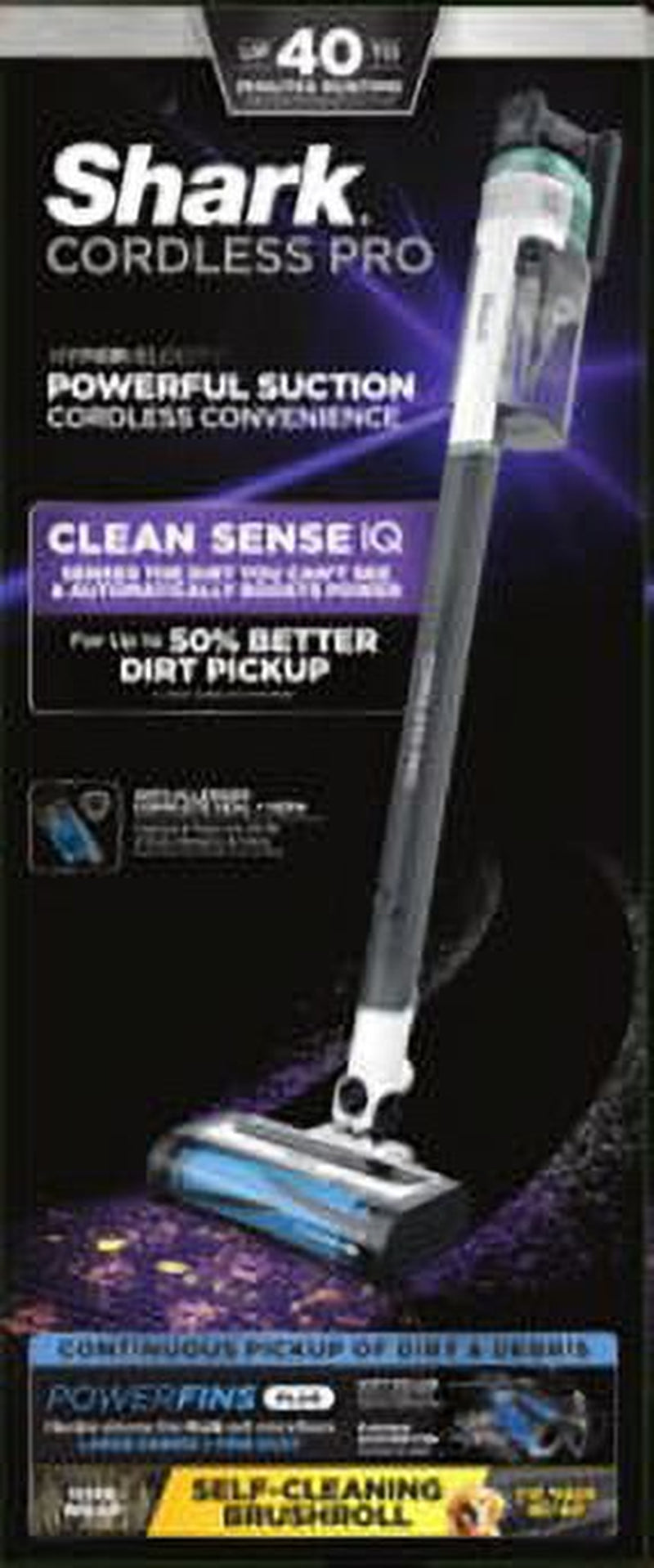 The new Shark® Cordless Pro IZ540H, Stick vacuum has the power and intelligence to change the way you clean. Clean Sense IQ detects the dirt you can’t see and automatically boosts power for up to 50% better dirt pickup. Packed with powerful suction, this cordless vacuum deep-cleans floors and carpets, capturing dirt, debris, and hair with its PowerFins™ Plus brushroll. The Cordless Pro easily converts to a handheld vac for above-floor cleaning and has a removable battery that runs for up to 40 minutes. It features an LED display with real-time readouts to monitor battery, select suction levels, and engage Clean Sense IQ. Anti-Allergen Complete Seal with HEPA Filtration captures and traps over 99.9% of dust, allergens, and odor, keeping them out of the air you breathe.