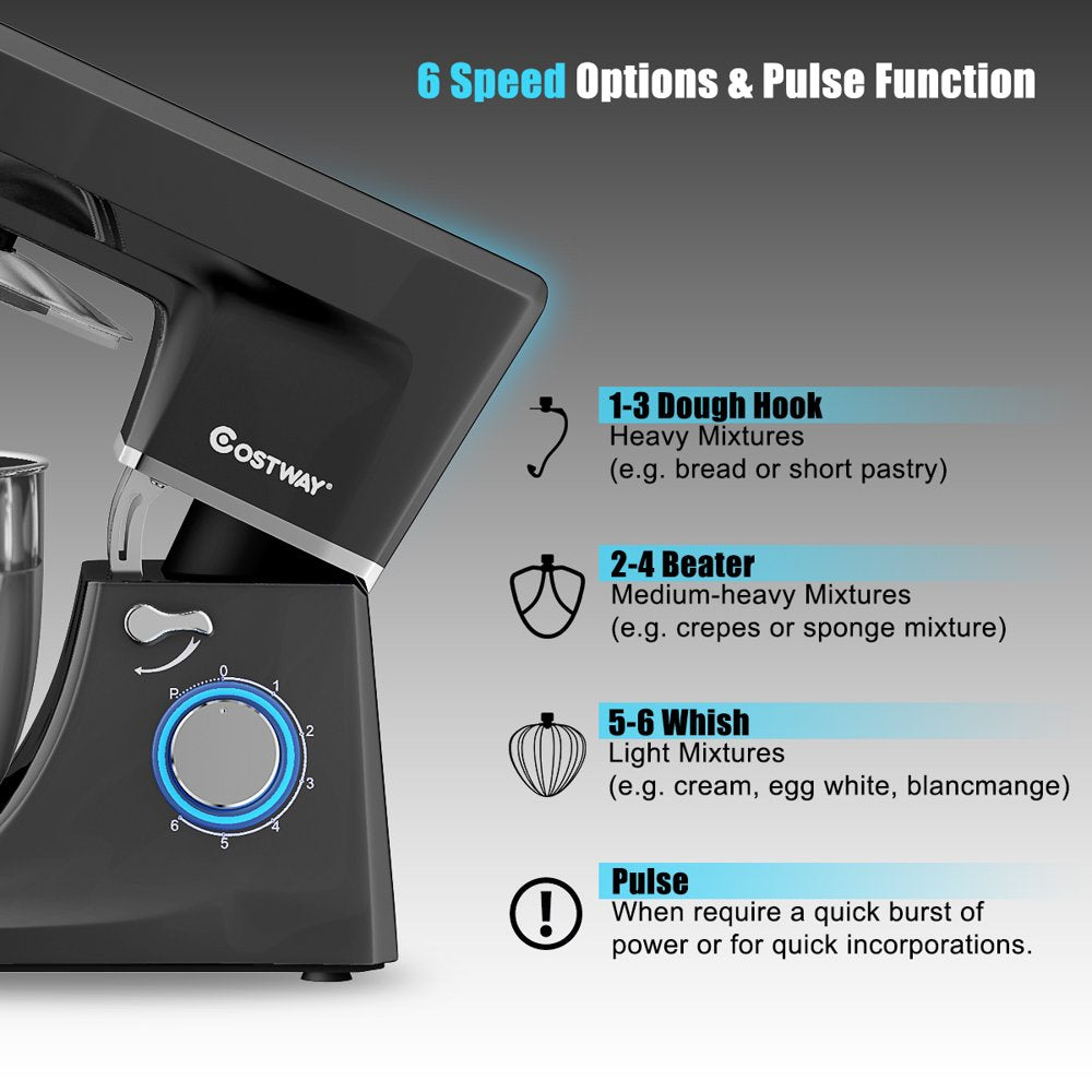 - TILT-HEAD & ANTI-SLIP DESIGN------The tilt-head design mixer allows access to install or uninstall bowl and its attachments easily by an easy-to-control knob, which also convenient for you to add ingredients for a recipe. Anti-slip suction cups are specially designed to keep mixer balanced and steady while working.