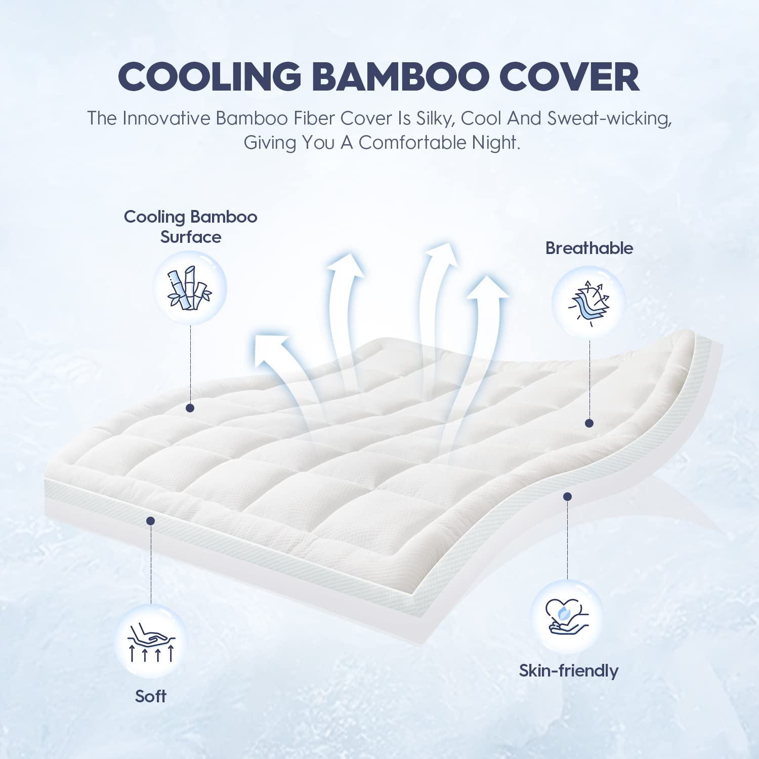 - 【Ultra Cooling & Breathable】The innovative bamboo fiber pillowtop cover adapts unique weaving technology, silky and cool to the touch, which can enhance air circulation, perfect for hot sleepers. Together with the premium gel-infused in memory foam, ensuring a cooling and breathable sleep environment.