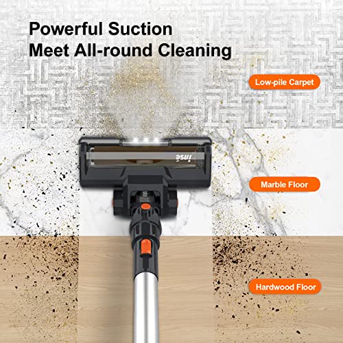 - 【5-Layer High-Efficiency Filtration System】INSE cordless vacuum cleaner is equipped with fully sealed high-efficiency cyclone separation technology and a high-density filtration system that captures up to 99.99% of microscopic dust particles as small as 0.1 microns without leakage while expelling purified fresher air for your family. The lightweight cordless stick vacuum cleaner picks up pet hair, fine dust, debris, dirt, cereal, food residue, and large particles and delivers perfect floor-cleaning performance.