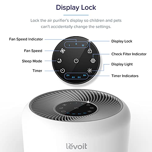 - UNDISTURBED OPERATION: The display light can be turned off to enjoy a perfect night of sleep without the effect of light. A timer for 2/4/6/8 hours and filter lifetime indicator for your convenience