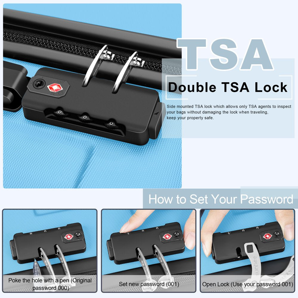 Sunbee committed to providing high quality and affordable luggage sets and Satisfy customers service, Professional fashion designs and bright colors make suitcase stand out in the crowd. Durable lightweight, and water-resistant ABS hardside shell, adjust freely handle, smooth 360°double wheels, TSA lock, and large storage space design help you bring easy, convenient and happy travel life. 2-year warranty period got you covered.