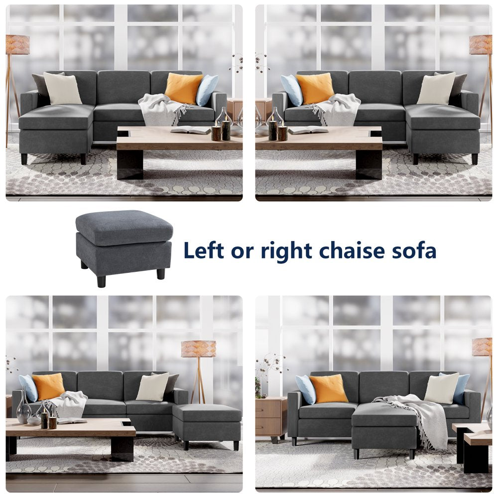 - Convertible Sectional Sofa: This small reversible sectional sofa with a movable ottoman, you can place the ottoman according to your house and preferences.Our sectional sofa can provide comfort and support for years to come, with soft cushions and a reinforced back, eases the rebound, perfect fits for your body, and will not make people feel tired after long-term use. Weight capacity: 660 lbs.