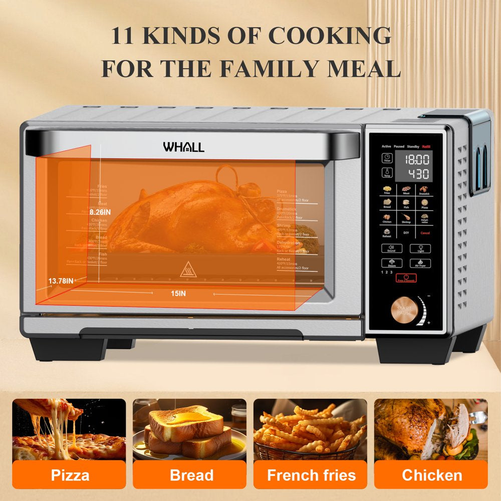 🍟WHALL Air Fryer Oven, Max XL Large 30-Quart Smart Convection Oven,11-in-1 Toaster Oven with Steam Function,12-inch Pizza,6 slices of Toast, 4 Accessories Included, Stainless Steel /1700W🍟