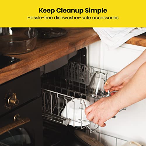 - All-inclusive: Includes three air flow racks, stainless steel rotisserie oven spit with retrieval tool, and a drip tray