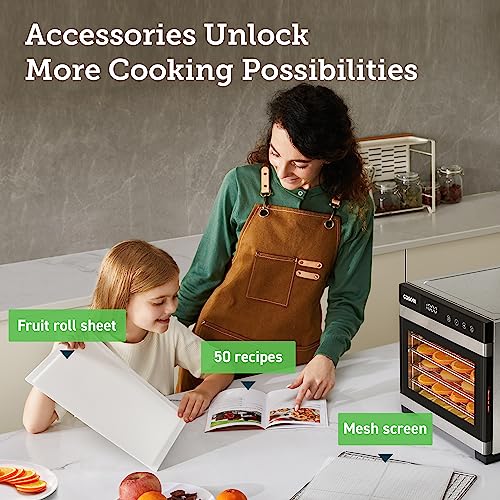 - FULLY EQUIPPED: Your food dehydrator comes with 6 stainless steel trays (12 x 13 in), 1 mesh screen, 1 fruit roll sheet, 1 user manual, and a 50-recipe cookbook. Search for C267-2MS or C267-FR to find more accessories