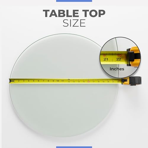 - 𝗗𝗜𝗠𝗘𝗡𝗦𝗜𝗢𝗡𝗦 𝗔𝗡𝗗 𝗙𝗜𝗡𝗜𝗦𝗛 - This 22" round clear tempered glass table top is designed with beveled edges for a clean and elegant look. It has a 1/2" inch (12mm) thickness and beveled polished, adding class to the interior and exterior of any table and providing a unique and sophisticated look wherever it is placed.