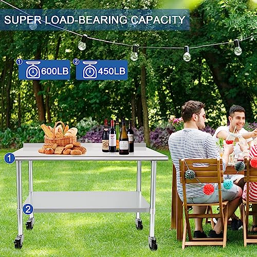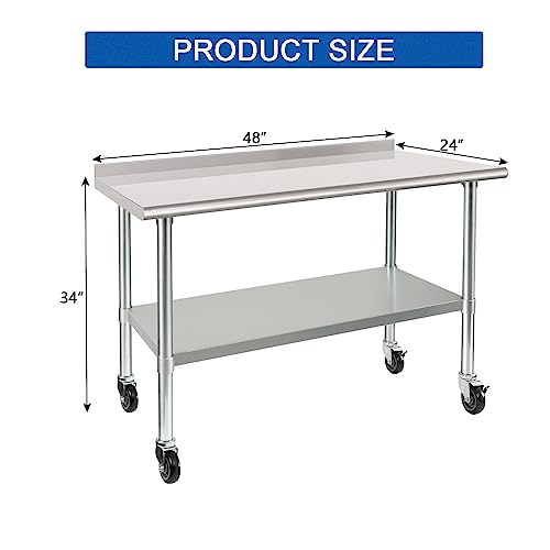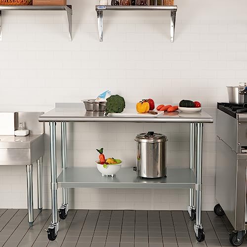 - 【LARGE STORAGE SPACE】- The 24 x 48 inches dimension provides ample space for a commercial kitchen. The top shelf has a weight capacity of 600 lb and the undershelf has a weight capacity of 450 lb, this unit is sturdy and utilitarian enough for food prep, such as storing microwave, oven, air fryer, etc.