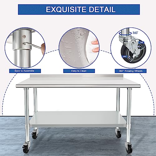 - 【HIGH QUALITY MATERIAL】- Our safety NSF-certified commercial stainless steel table top shelf is made of durable 18-gauge 430 stainless steel, which is excellently and resistant to corrosion and rust. The metal table can withstand the demands of a busy kitchen or industrial setting.