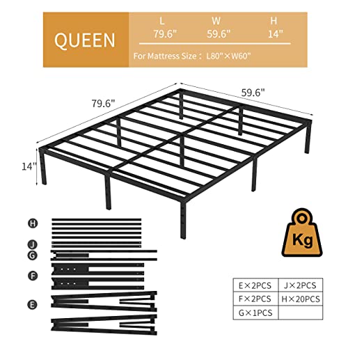 - 【SAFE SLEEP】: The sturdy steel slat support with center support legs makes the metal bed more stable without any annoying sliding or creaking. Don't hear the squeak of the bed frame rocking when you roll over in the middle of the night. The platform bed frame allows you to sleep well and have a comfortable night. A bed frame is something you should have.