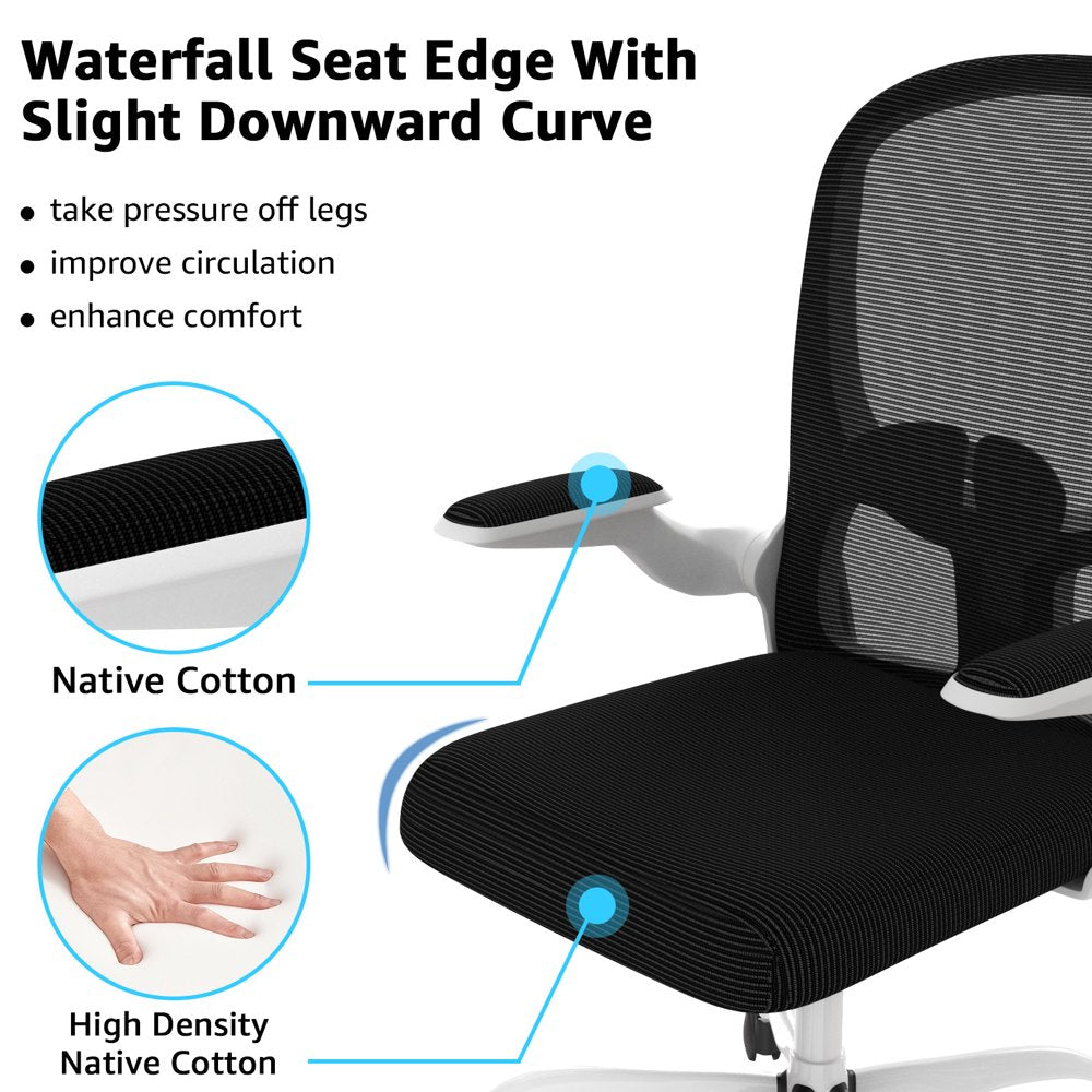 🛒🎀【Breathable Mesh】The backrest and cushion are breathable. Made of high quality mesh to make it stable, in good shape and elastic. Let you have a comfortable experience. Made of virgin cotton material, the office chair intelligently responds to your body's unique characteristics to perfectly support your weight, size and even temperature, and it will help you feel more comfortable at work that requires prolonged sitting. Plus, this chair has a mesh back that allows airflow to keep you cool.