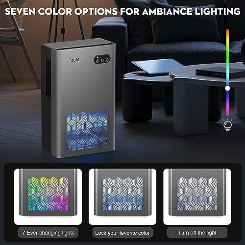 - 【SEVEN COLOR OPTIONS FOR AMBIANCE LIGHTING】- This dehumidifier comes in 7 different colors that are constantly changing. You can choose a color you like and lock it, which can be used as a night light to create a cozy and romantic sleeping atmosphere. However, if you do not like the light, you can also choose to turn it off.
