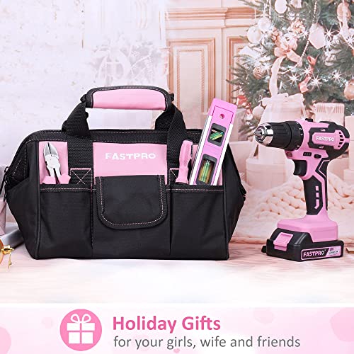 - Includes cordless drill driver,slip joint pliers, groove joint pliers, adjustable wrench, long nose pliers, magnetic screwdriver holder, screwdriver bits, utility knife, tape measure.The pink drill set for women is perfect for your home use or gifts