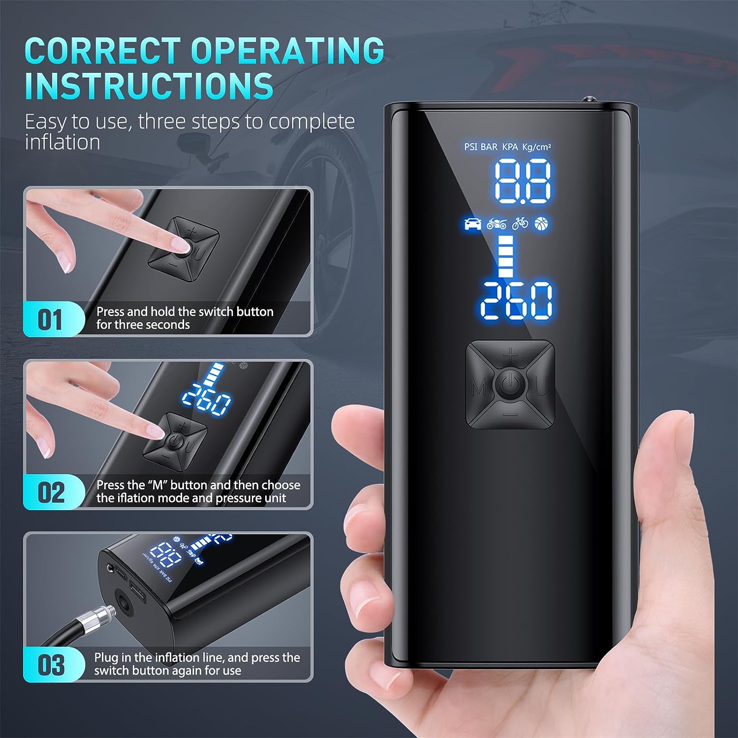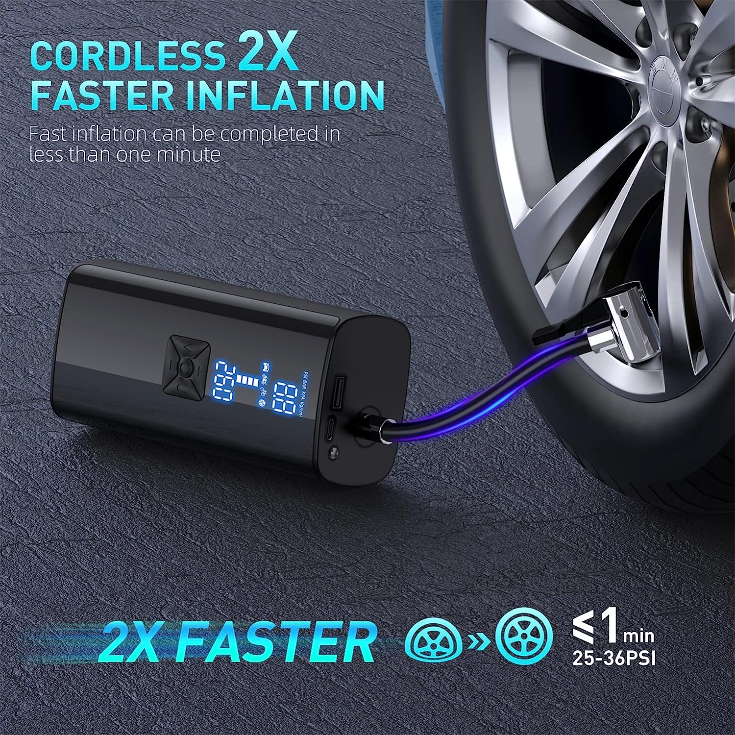 - 【Powerful Air Compressor】Built-in 25000mAh rechargeable high-capacity battery, tire inflator portable air compressor does not require an external power supply while working. 2x faster inflation speed, +30% more power than other ordinary electric air pump, whinch can provide a cordless continuous runtime up to 2 hours.