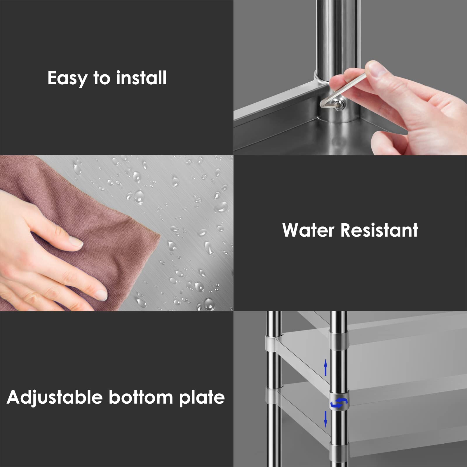 - Adjustable Height: With an adjustable Stainless Steel undershelf and 4 Stainless Steel legs, you can freely change the height of the undershelf to suit your demands. Adjustable feet with a non-slip mat provide more stability.