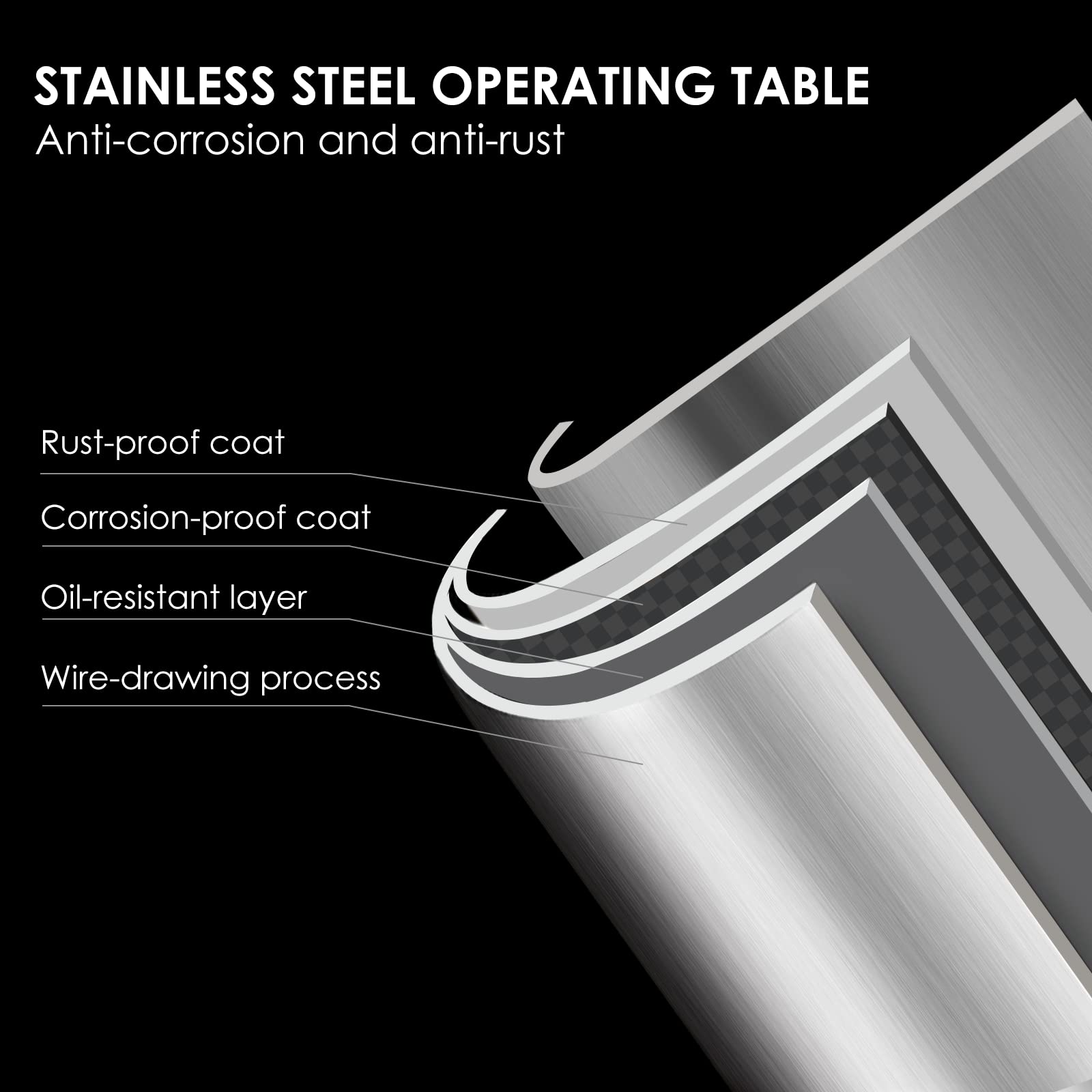 - Heavy Duty Design: Made with 18-gauge type 201 stainless steel and polished surface for greater rust and corrosion resistance, this table is built to last.